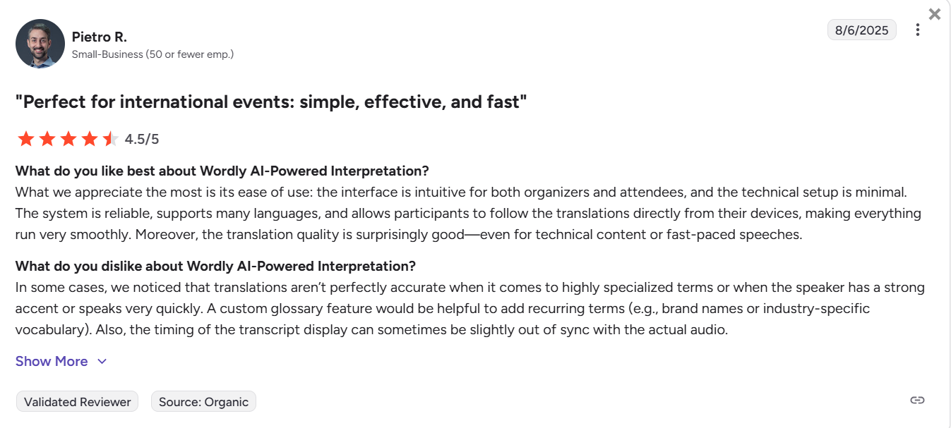 | Interprefy | Moderate | Good | Yes | Large enterprises |