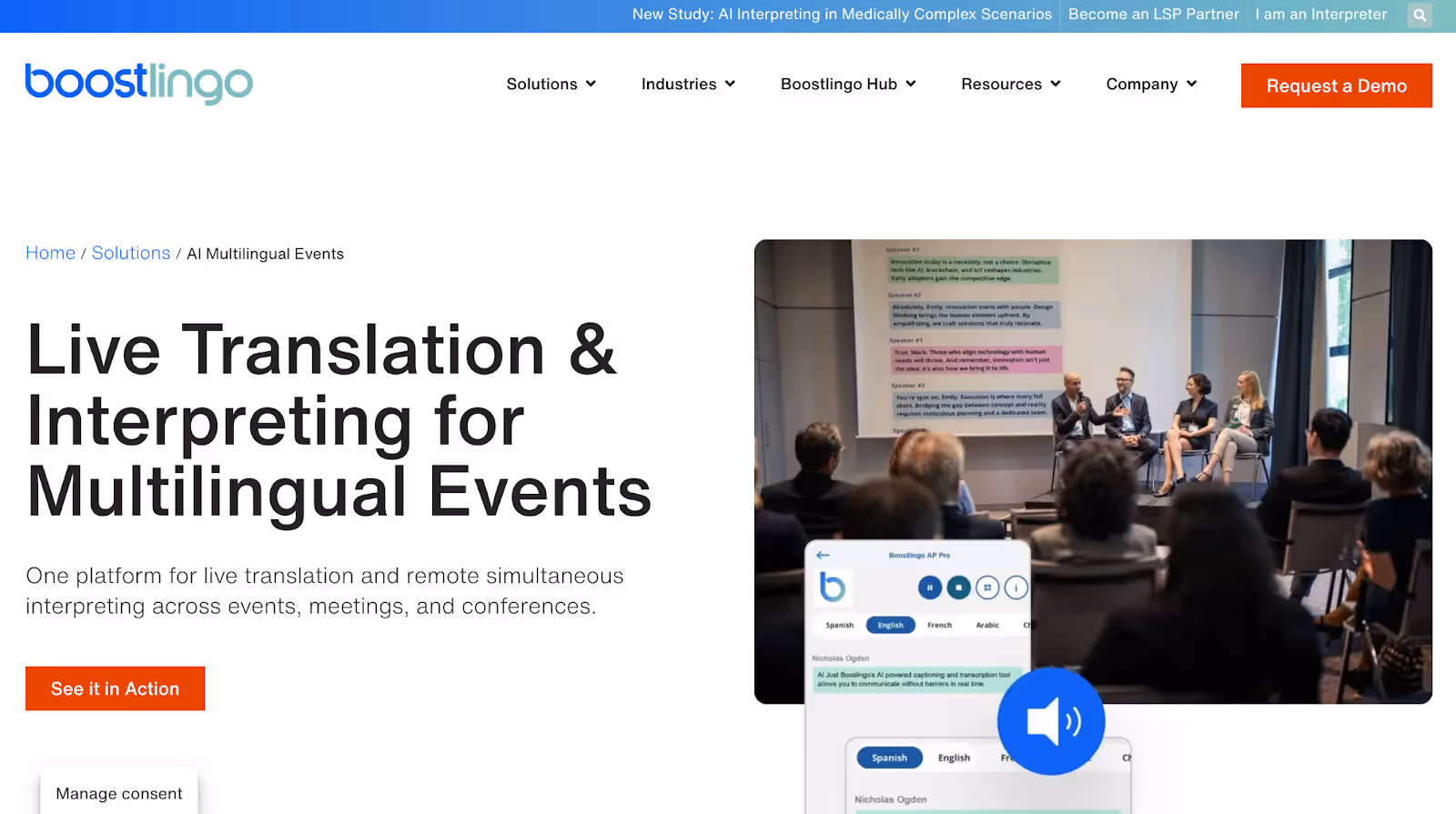 Best for: Large enterprises and event organizers conducting multilingual webinars, hybrid summits, or in-person global town halls.