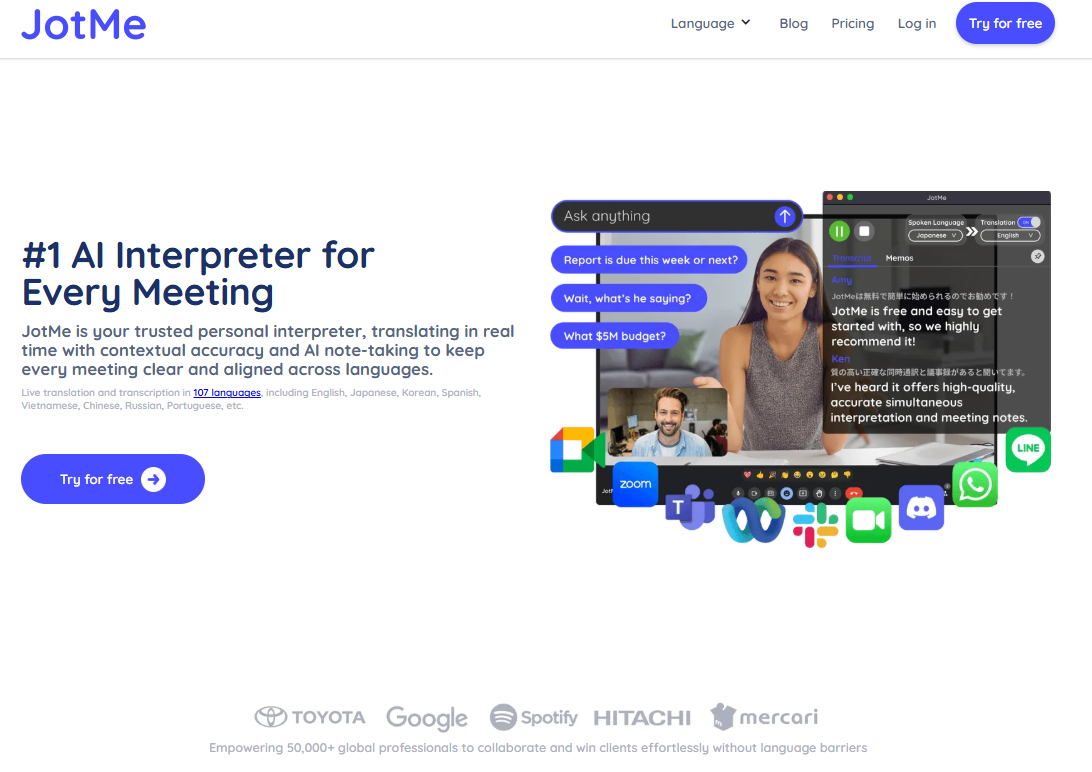 JotMe stands out as one of the best AI subtitle translators with its real-time contextual translation, easy setup, and the following: