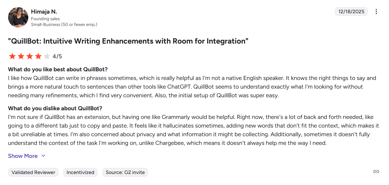 ✅ Users on G2 were impressed with how simple it is to use QuillBot.