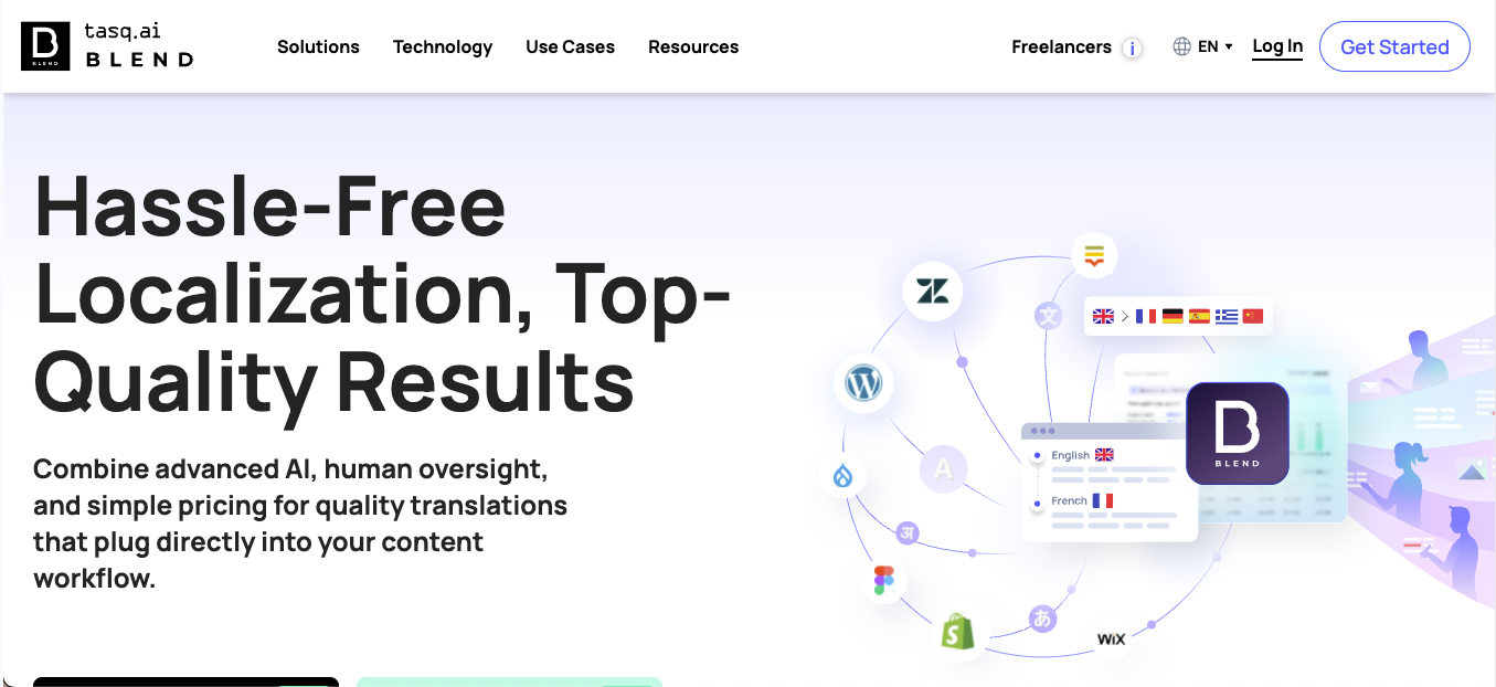 | Blend | Localization platform | Software and websites | $0.12/word or $175/month | 120+ |