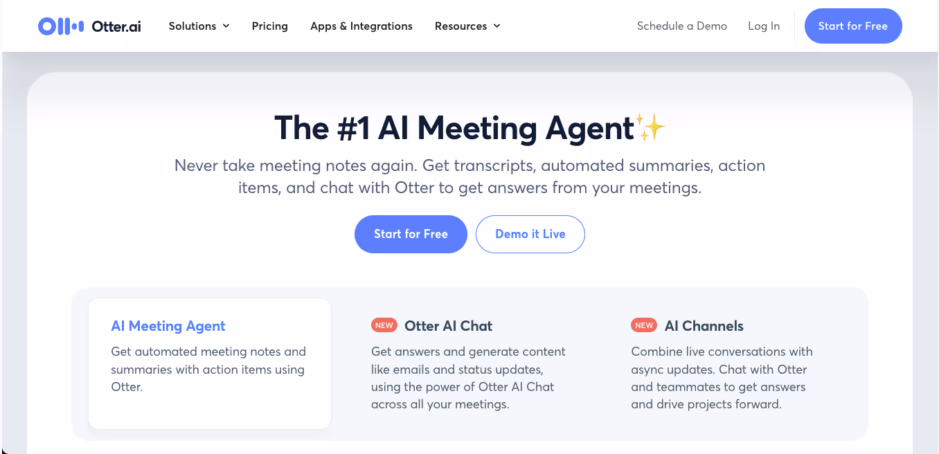 Otter.ai es un asistente de reuniones en línea que actualmente solo admite tres idiomas: inglés, español y francés. Usamos Otter para una de nuestras llamadas de marketing en Zoom y descubrimos cómo se unía automáticamente a la reunión, tomaba notas en tiempo real y resumió todo en un breve resumen. Lo que nos sorprendió fue que incluso incluía elementos de acción que facilitaban las cosas a uno de nuestros compañeros, que no podía unirse a la reunión.