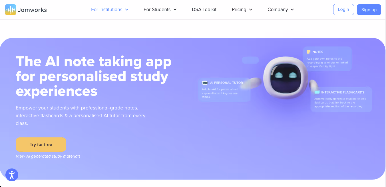 Si eres un estudiante o un educador que busca una forma más inteligente de capturar, organizar y revisar el contenido de la clase, Jamworks está diseñado específicamente para ti. A diferencia de los tomadores de notas genéricos, Jamworks utiliza la inteligencia artificial para grabar las clases, generar automáticamente notas detalladas, crear tarjetas didácticas interactivas e incluso actuar como tutor personal, lo que hace que las sesiones de estudio sean más personalizadas y eficaces.