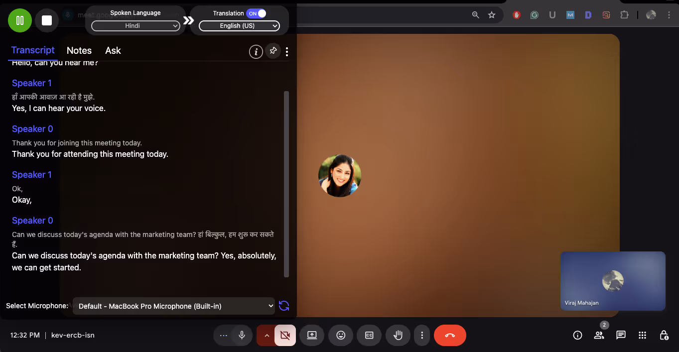 Cuando colaboras con compañeros de equipo en diferentes idiomas o intentas seguir una discusión compleja en tiempo real, necesitas algo más que una transcripción. Necesitas una traducción contextual precisa a medida que se desarrolla la reunión, resúmenes basados en inteligencia artificial y una forma de hacer preguntas sin interrumpir el flujo.