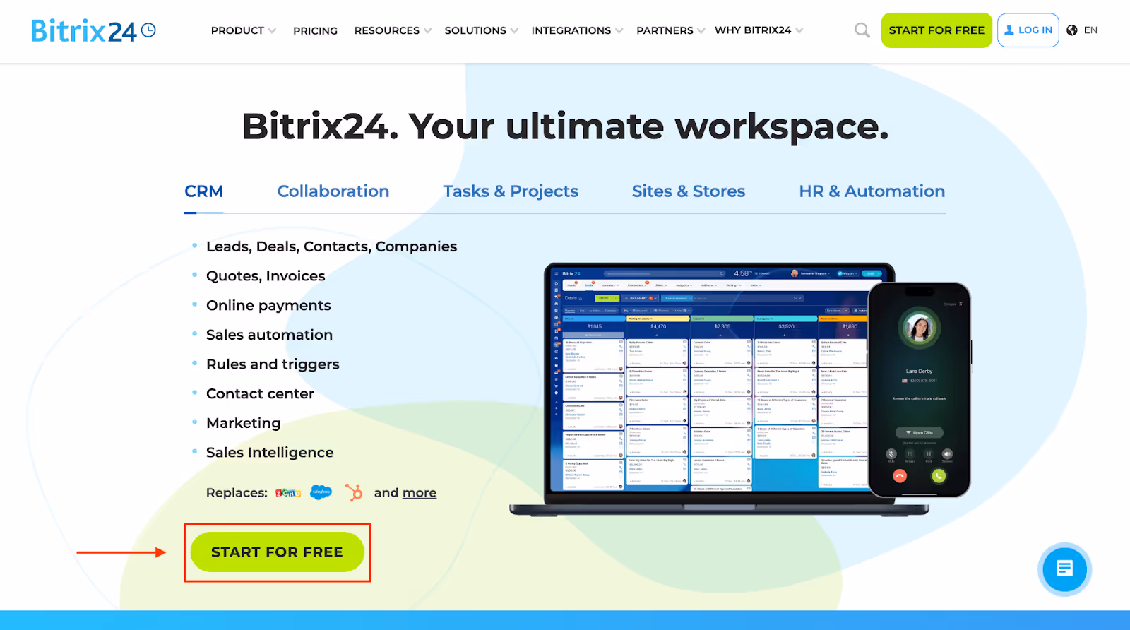 Bitrix24は、CRM、プロジェクト管理、チームコミュニケーション、タスクトラッキング、ドキュメントストレージ、マーケティングキャンペーンのためのオールインワンビジネスプラットフォームです。複数のツールを置き換えることができるため、日常業務を1つの中央ワークスペースから管理できます。