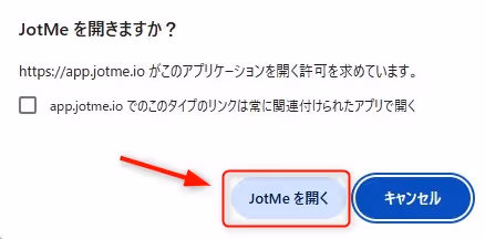 10.「JotMeを開きますか?」とポップアップが表示されたら「JotMeを開く」をクリックするとJotMeのデスクトップアプリが開きます。