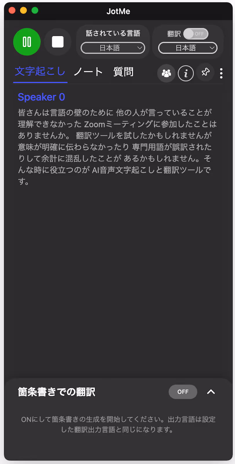 4.会議が始まったら再生ボタンを押すと音声を録音し、文字起こしが始まります。