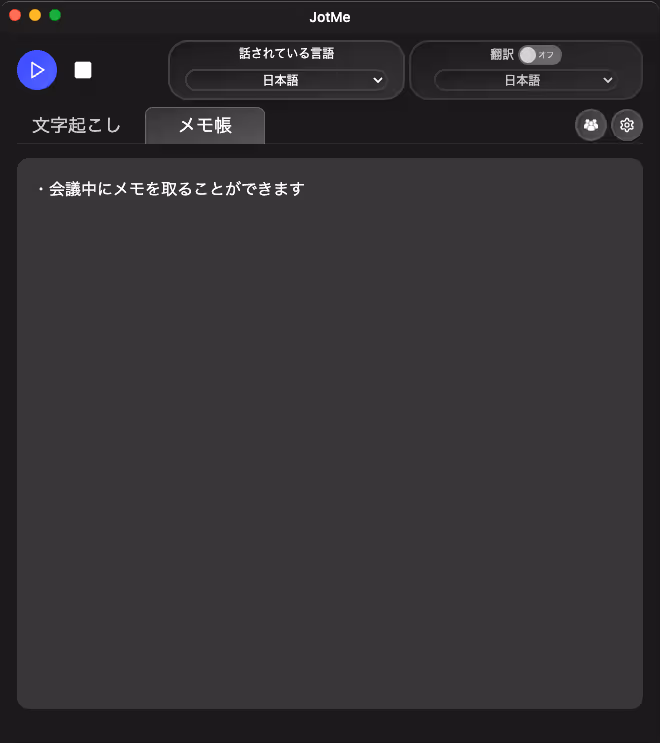 まず、JotMeウィンドウの「翻訳」がオンになっている場合はオフにしてください。