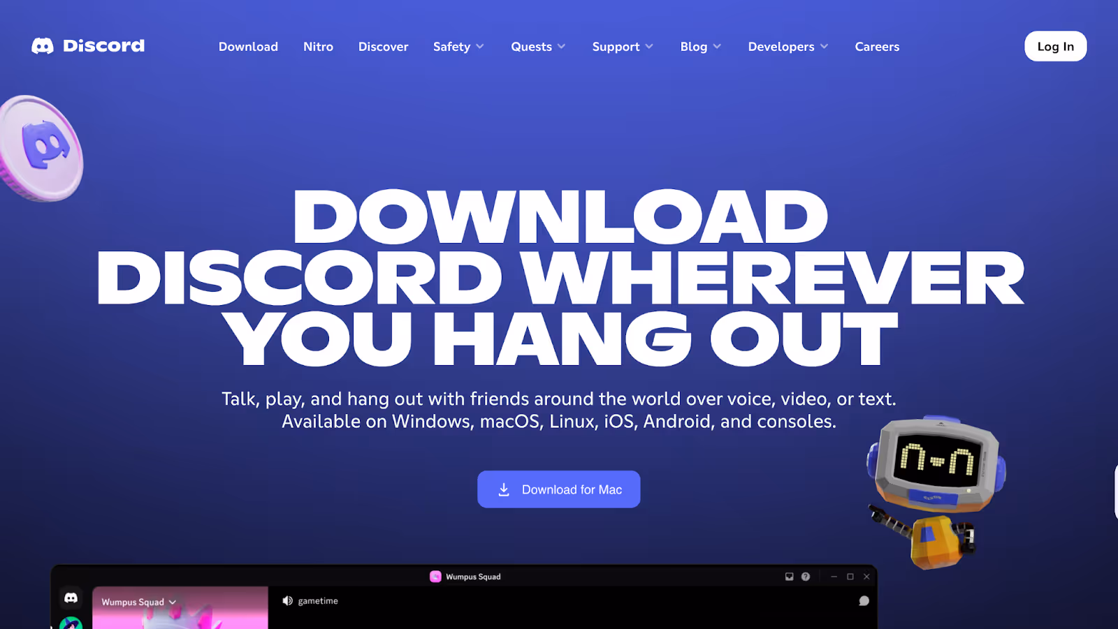 Discord의 브라우저 및 모바일 버전은 오디오를 샌드박스로 처리하여 서드파티 캡처를 방지합니다.공식 디스코드 웹사이트로 이동하여 “를 클릭하세요.다운로드.” OS를 선택하고 다운로드하세요 설치 프로그램을 실행하고 설정을 완료합니다.그런 다음 계정에 로그인하세요.