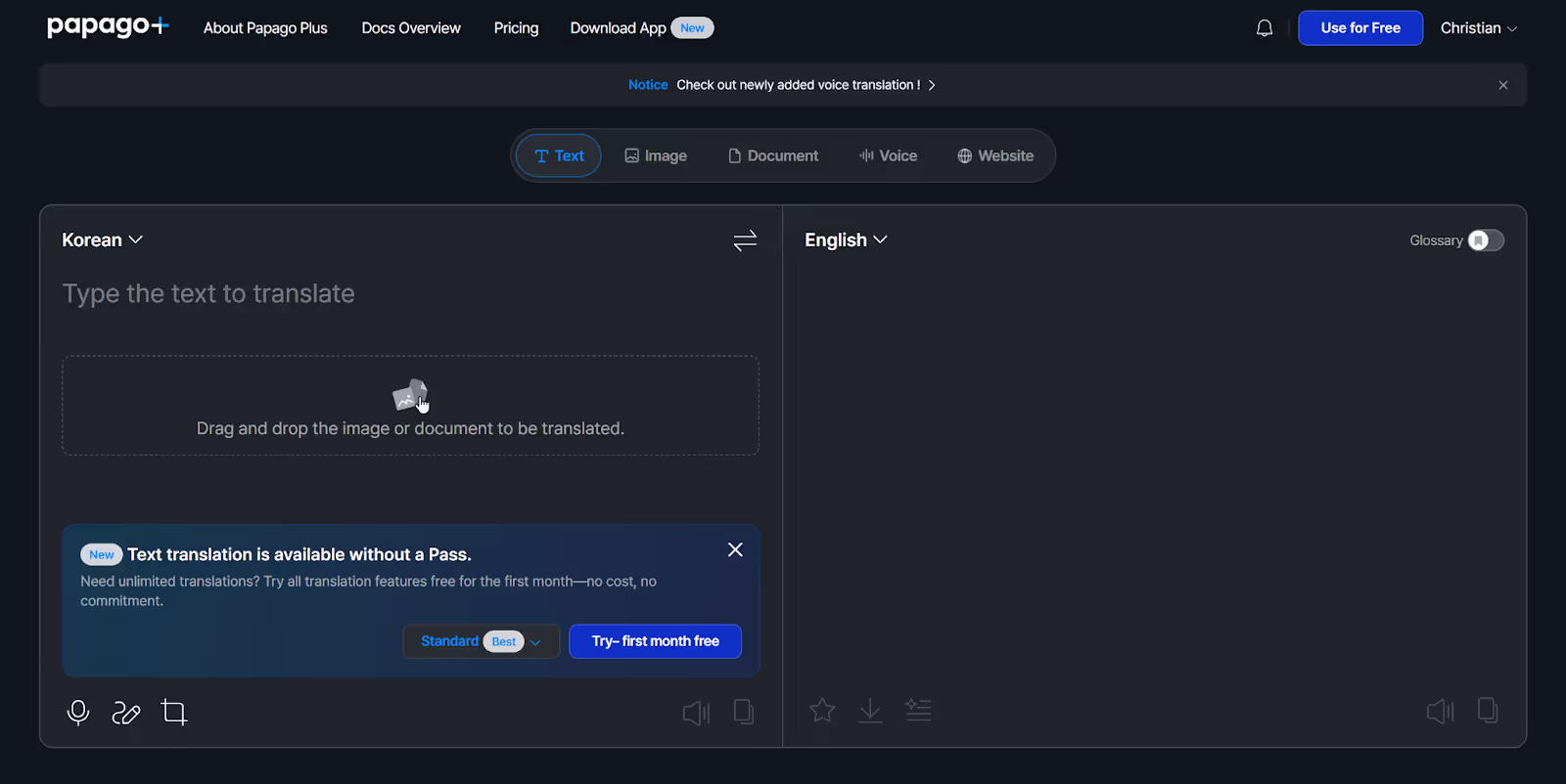 Có, Papago Plus cung cấp bản dùng thử miễn phí cho phép bạn dịch văn bản, hình ảnh, tài liệu, giọng nói hoặc trang web bằng ngôn ngữ ưa thích của bạn. Tuy nhiên, để truy cập bản dùng thử miễn phí, bạn cần cung cấp chi tiết thẻ tín dụng của mình.