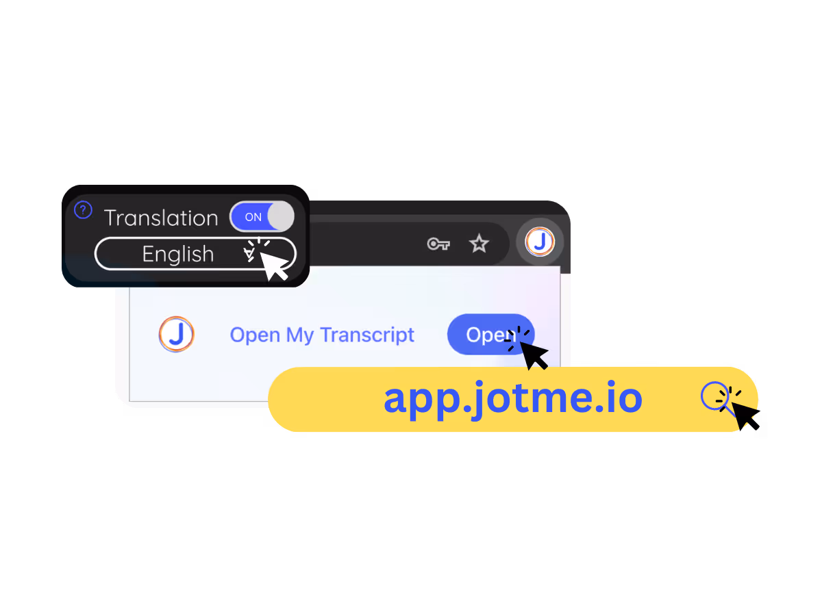 安装 JotMe Chrome 扩展程序 到您的Chrome浏览器。设置语言首选项以接收笔录和翻译。